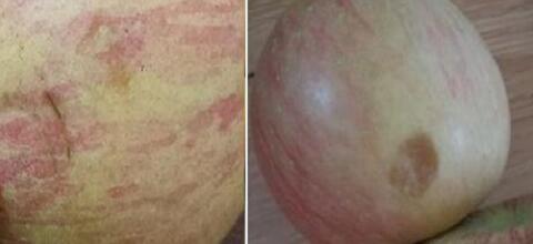 表皮顏色:產地雨水多的時候,由于日照不充分,可能會導致蘋果表皮不太紅,但是都是成熟的,可以放心食用。部分雹點消掉即可不影響食用的。